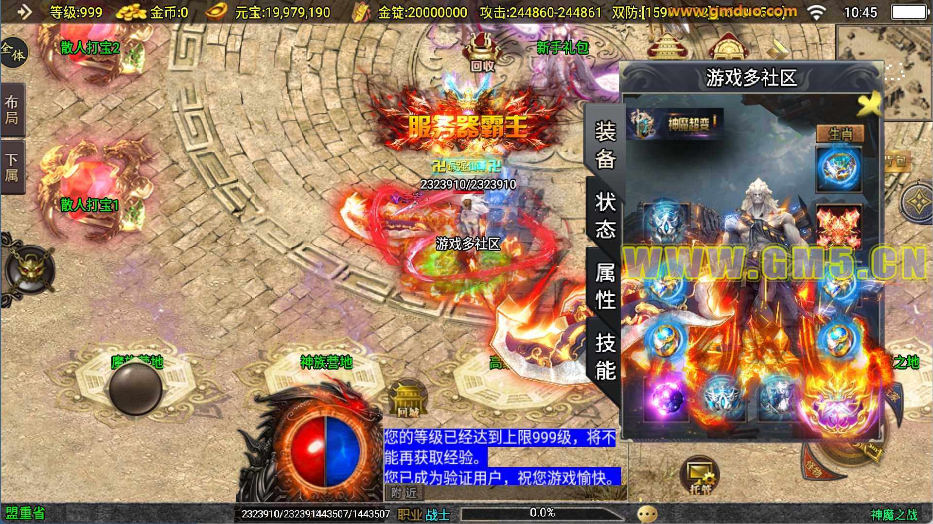 传奇手游神魔之战单职业六大陆一键端+安卓+充值后台+外网教程